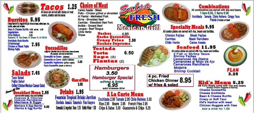 Welcome to Salsa’s Fresh Mexican Grill, your go-to destination for authentic Mexican cuisine in Yuba City, CA. With a commitment to high-quality ingredients, the menu shines with options for every palate.